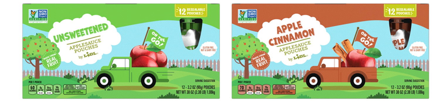 Refreshing a design for 'on the go' applesauce pouches to fit the current market. Old design pictured, R.